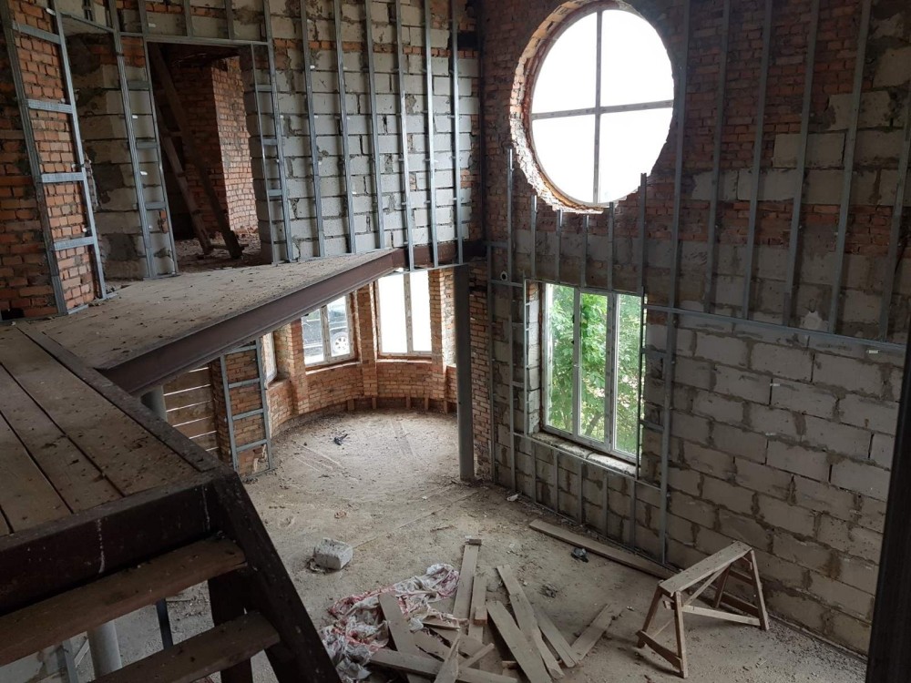 Стіни з червої цегли та піно блоку