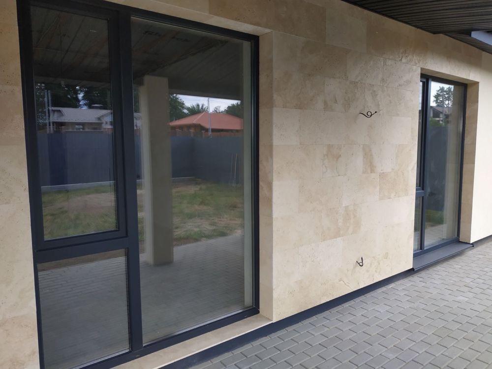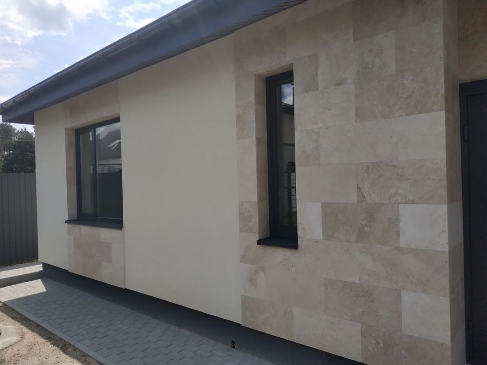 Оздоблення фасаду виконано з Травертину.