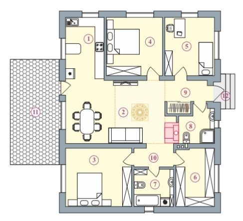 Передбачена можливість автономного опалення – місце з армованим фундаментом під розміщення каміно-пічки (така як на фото), або під камін.