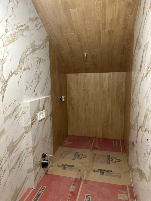 площа 103 м2 . Два санвузла з теплими підлогами ,душ та ванна з джакузі. Стіни та підлога в санвузлах оздобленні плиткою. Чотири кімнати одна з яких має окремий санвузол з джакузі та гардеробну.Стіни та стелі другого поверху пошпакльовані під фінішне оздоблення.