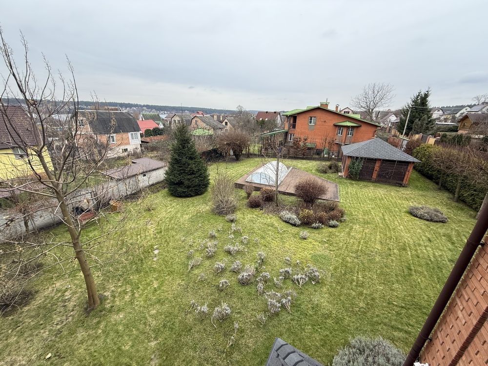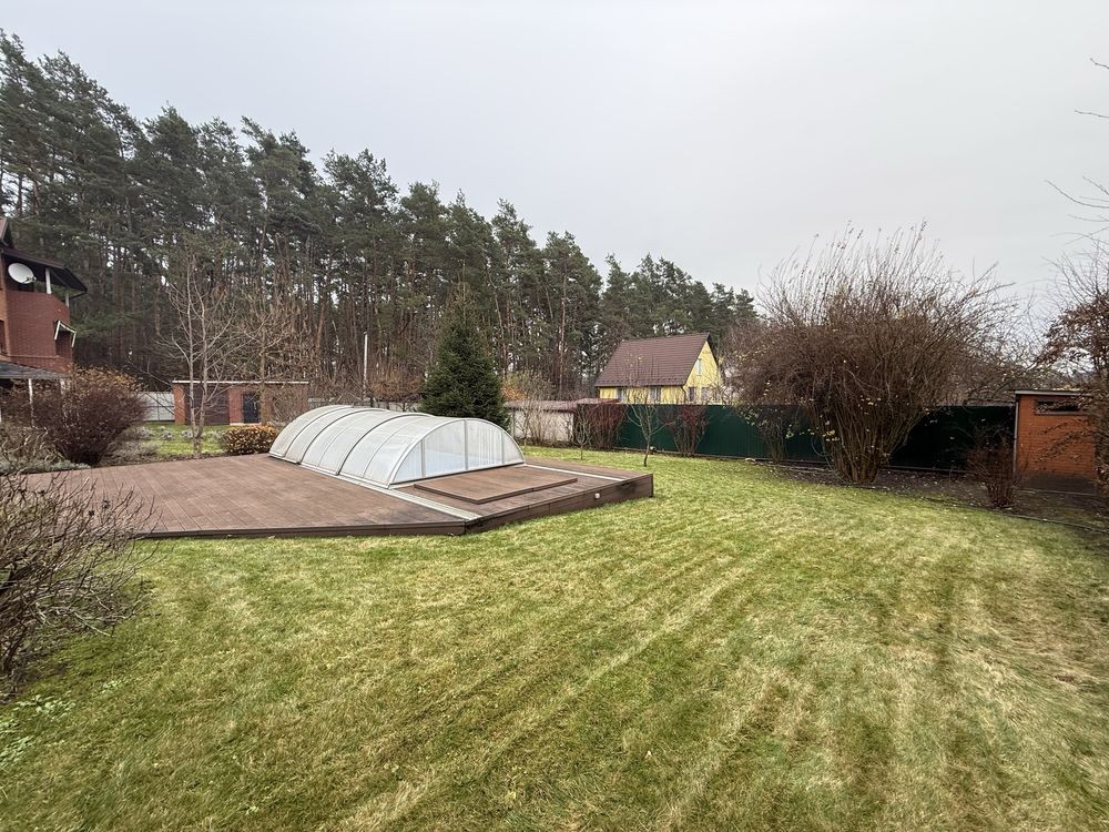 На земельній ділянці розташовано два приміщення для зберігання технічного обладнання, новий великий критий басейн з терасою для відпочинку, та велика альтанка з мангальною зоною. Автоматичний полив газону.До найблищого міста Ірпінь 10км.