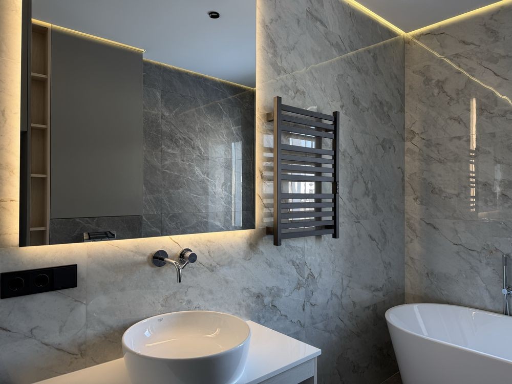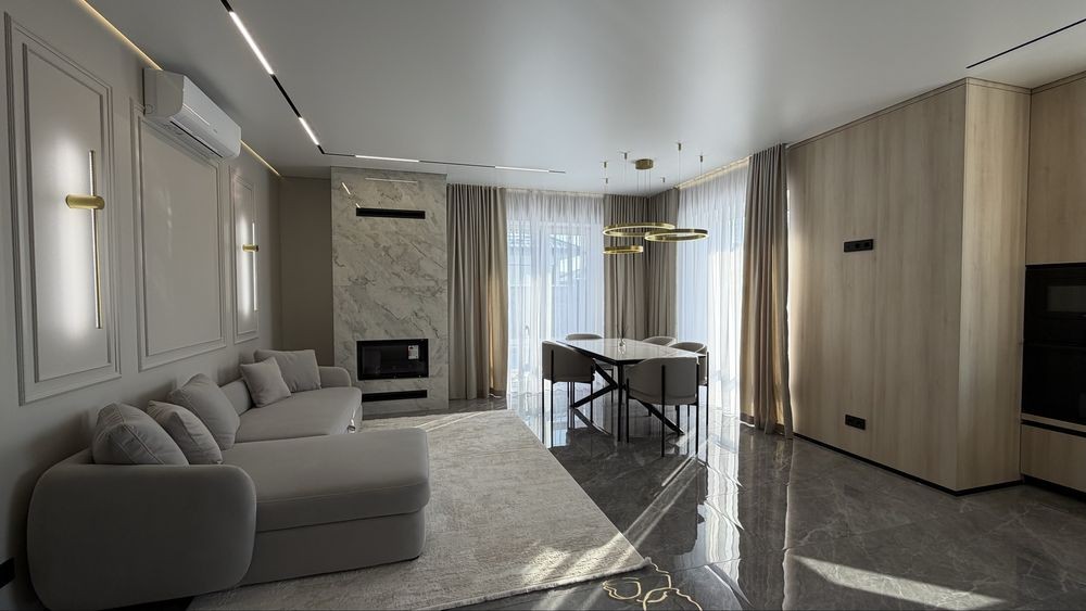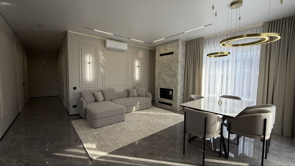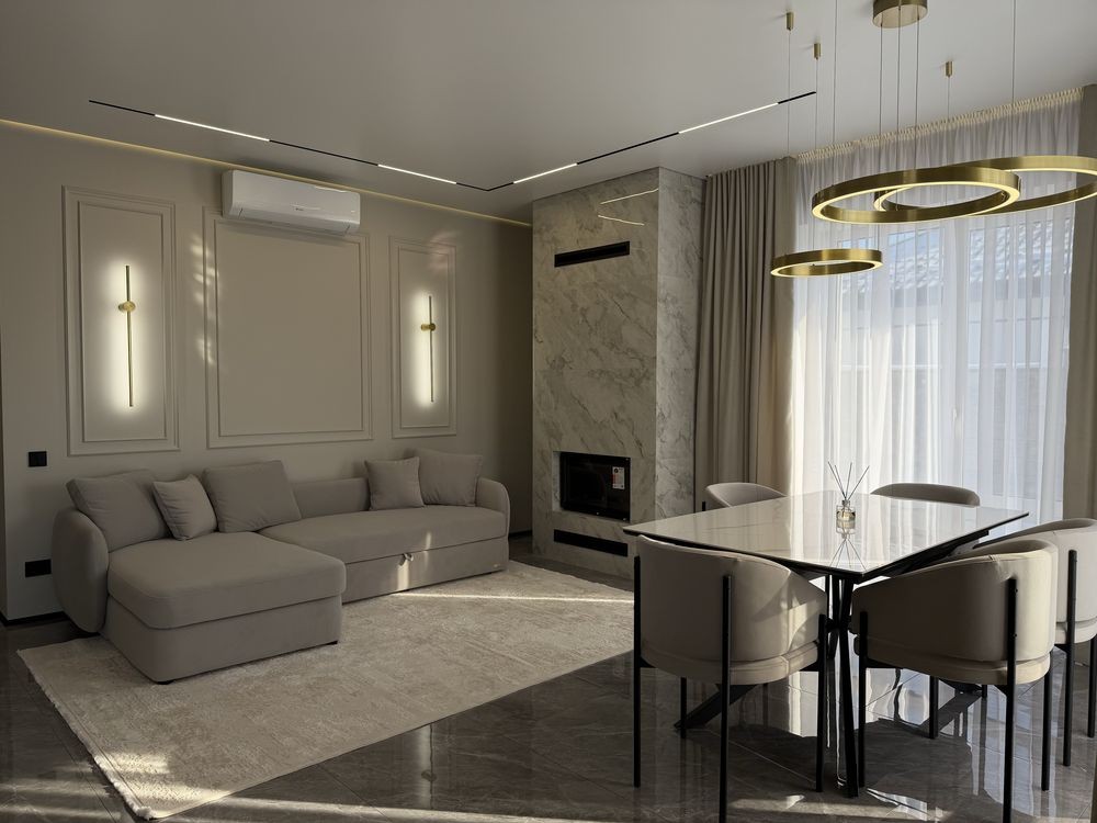 Сучасний дизайнерський ремонт,вмонтовані меблі,та побутова техніка,( кондиціонер,вмонтований холодильник,індукційна поверхня,посудомийна, мікрохвильова,духова шафа), преміальна сантехніка.