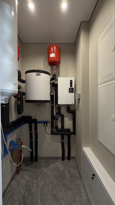 13 кВт світла,тепловий насос, електро котел (резервний),свердловина,септик,ливнева каналізація з дренажними колодязями( дощоприймачі), камін з розводкою тепла по кімнатах,американка:100 кв м,три окремі спальні, два санвузли, кухня вітальня, та котельня.