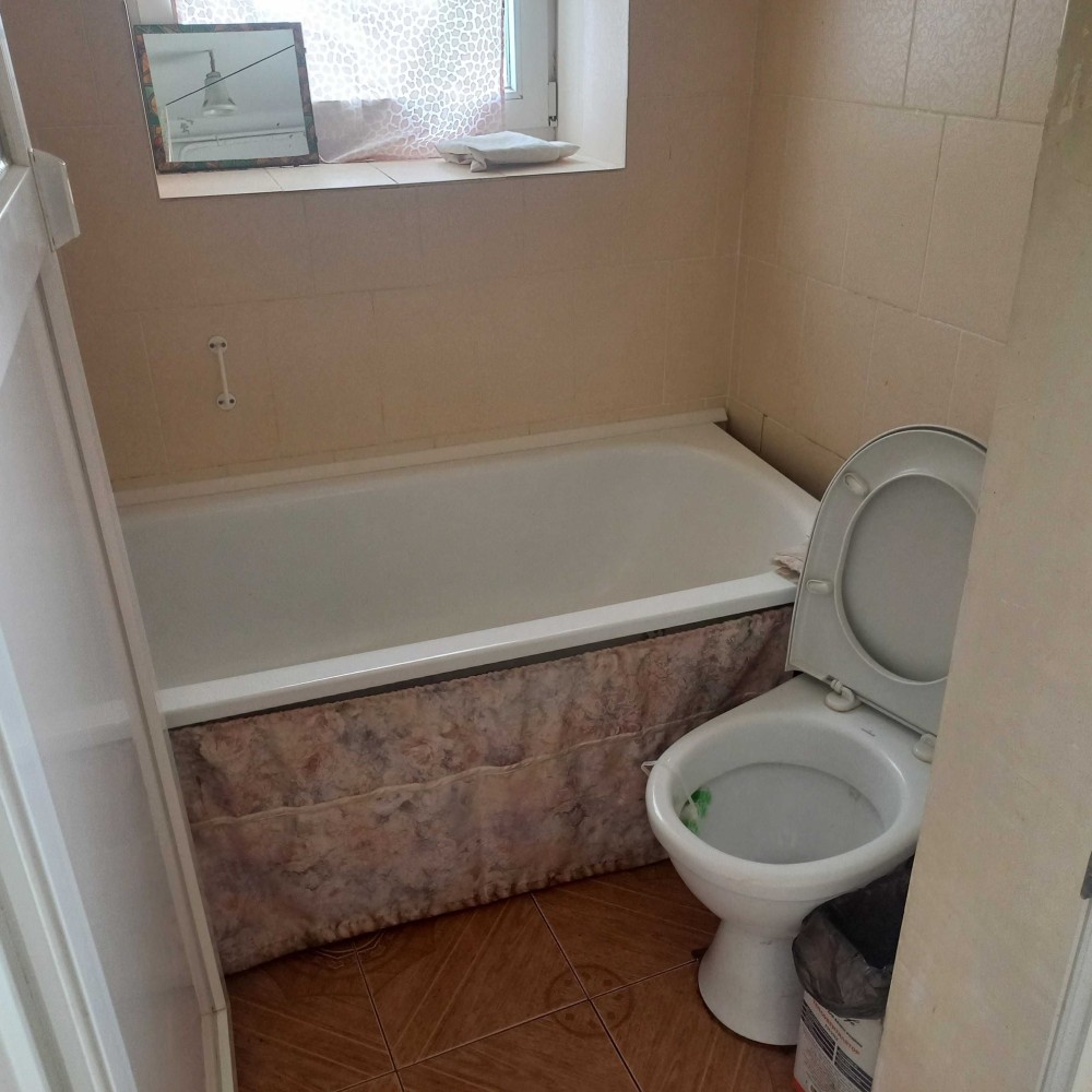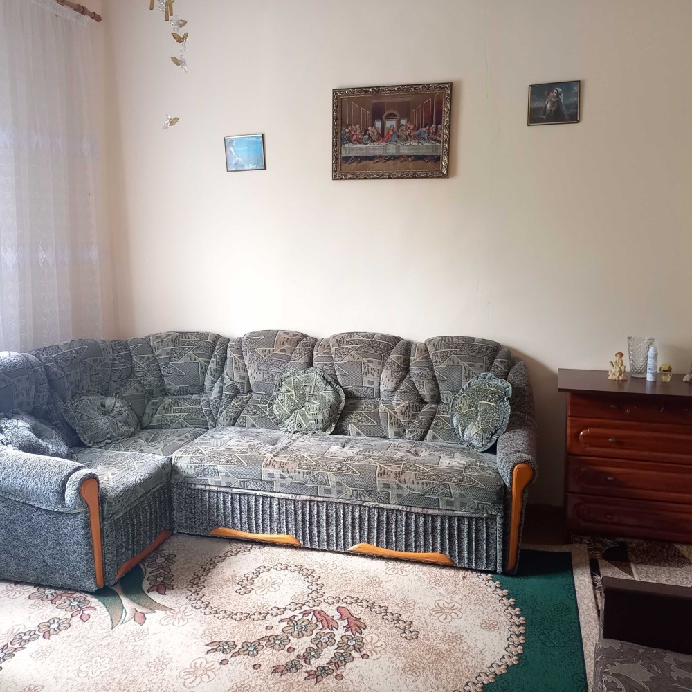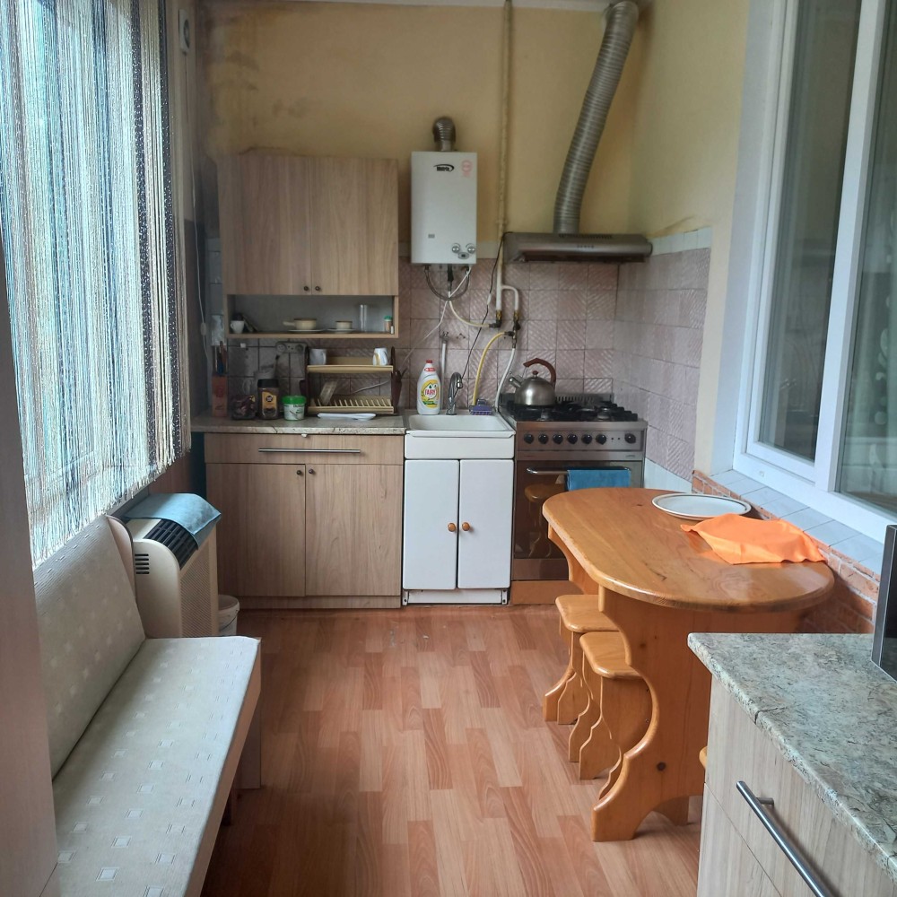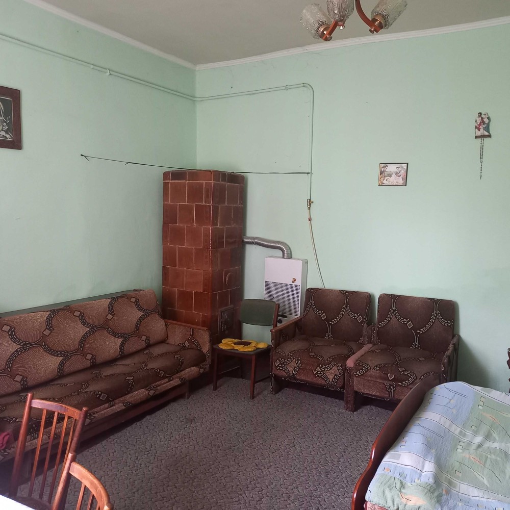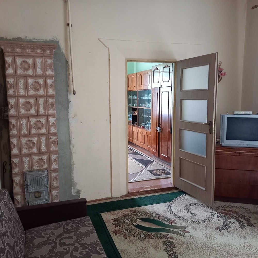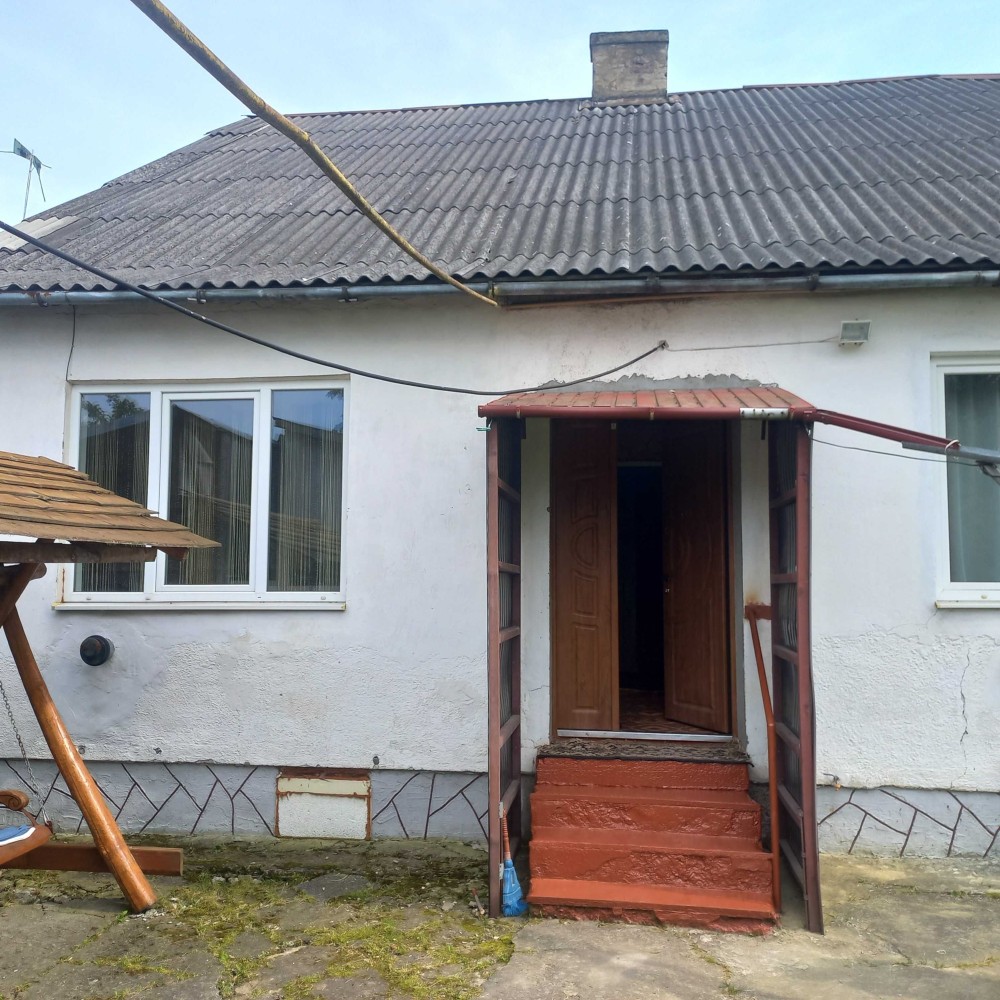 Цегляно-шлаковий критий шифером, підлога дощата, ламінат. Кухня і три кімнати. Стіни гіпс, вапно. Два санвузли. Опалення пічне і конвектори. Вікна-пластик. Вода і каналізація – автономні. Загальна площа – 114,0 кв.м. Житлова площа – 62,7 кв.м. Площа кухні – 16,4 кв.м. Земля 10 сот. Гараж, сарай, літня кухня. Ціна – 48 500 у.о. Т о р г.