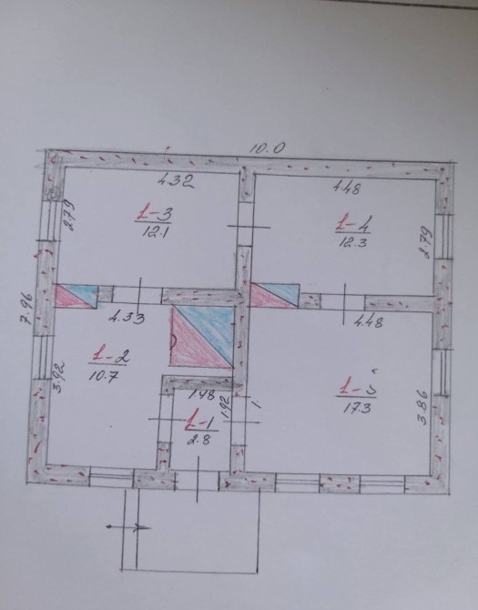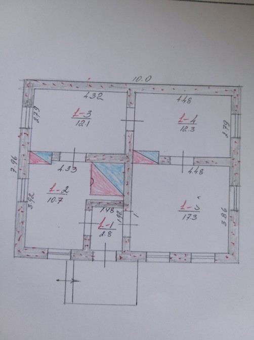 - три кімнати, кухня, коридор, є місце для сан вузла.
