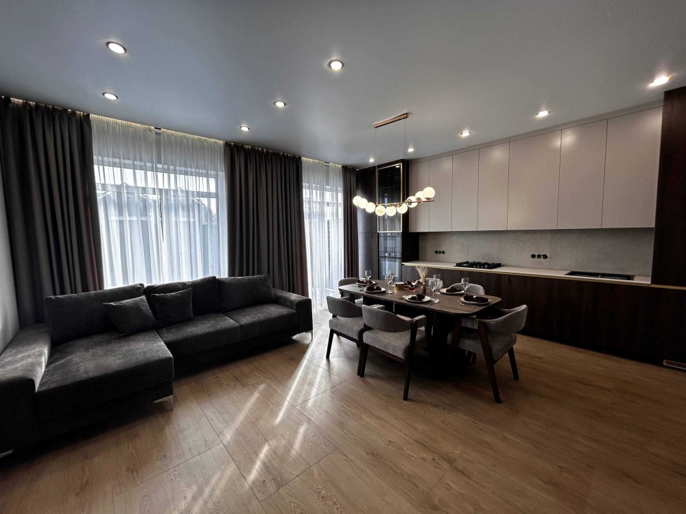 Будинок із ремонтом, меблями, технікою та центральною каналізацією, повністю готовий до проживання. Вдала транспортна розв'язка, виїзд по декільком напрямкам. Поруч жилий комплекс, торговий центр, нова пошта, ресторани, дитячій садок, школа.