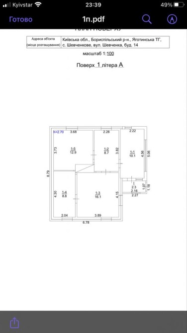 Загальна площа землі 49 сотих з них 25 під будівництво інші під СГ.