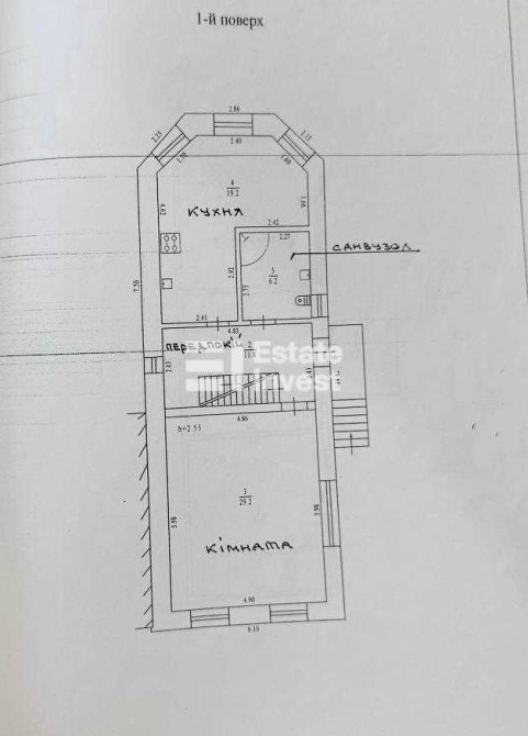 1 поверх: передпокій, вітальня, кухня, санвузол.