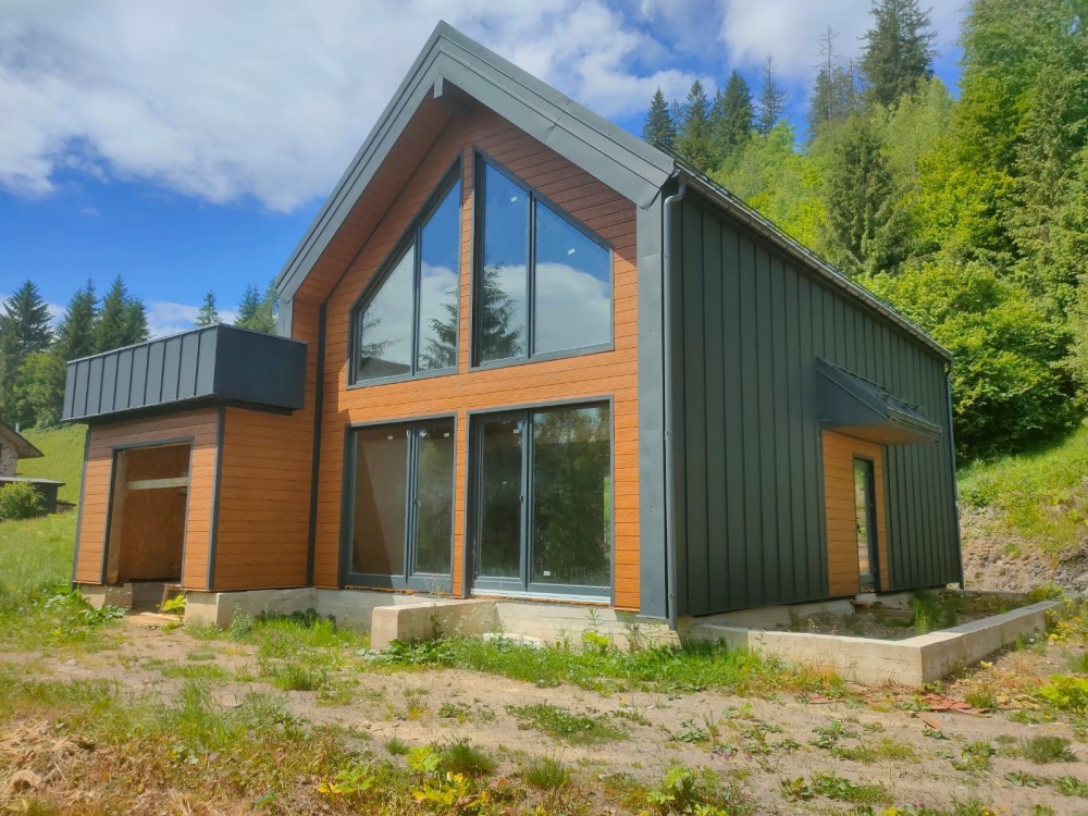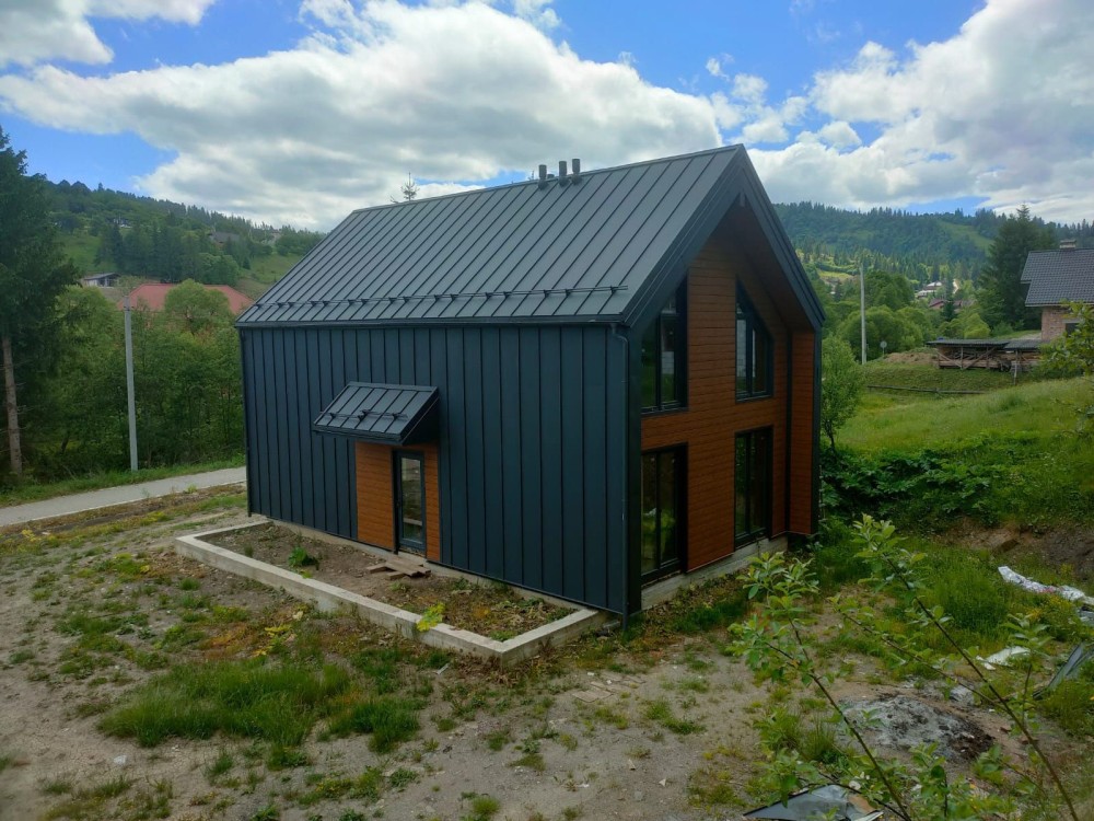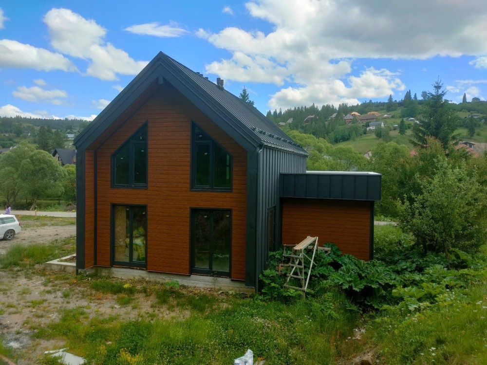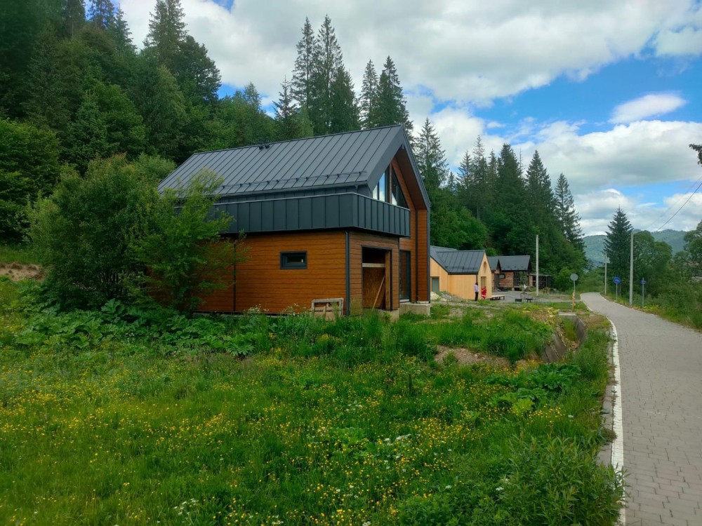 Продам будинок без внутрішніх робіт у Славську по вул.Устяновича. Стиль барн-хауз, 167м2. Вода, каналізація, електрика 3ф/15кВт. Ділянка 7,5сотих, насипна та рівна. Спереду будинку річка, ззаду гора вкрита лісом. Асфальтований доїзд, без підйомів. Є дизайн-проект внутрішнього облаштування. 3км від центру нового курорту. Власник.