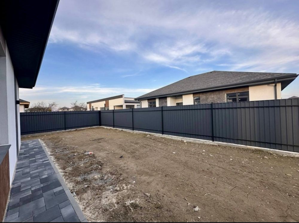 Територія огороджена парканом з металопрофілю, відкатні ворота, є варіант з навісом для авто та додаткове місце для