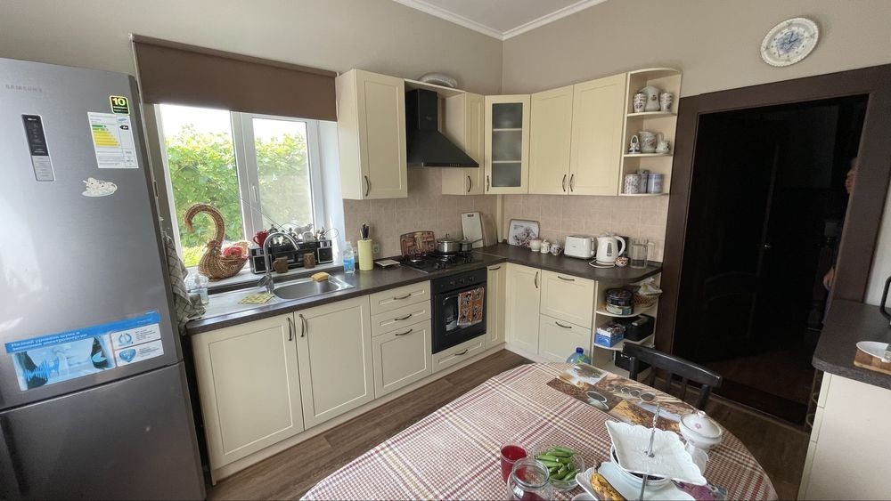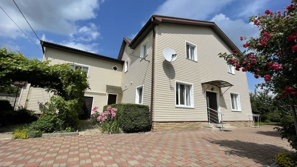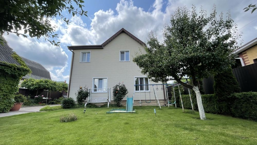 Будинок загальною площею 200м2 повністю готовий для проживання з меблями і технікою! + хоз. блок (літня кухня з капітальним підвалом) Будинок Складається: із кімнати вітальні і просторої кухні плюс санвузол, кладова, комунікаційна на першому поверсі та 3х повноцінних спальних кімнат і однією дитячою кімнатою на другому поверсі. Побудований для себе з моноліту і цегли, на ділянці є гараж, дитячий майданчик, сарай і вольєр для собаки. Площа ділянки 14соток.