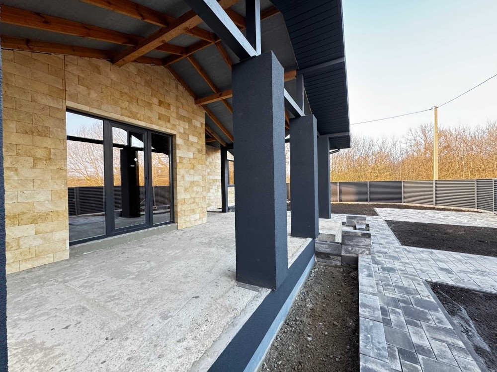 Продам новий будинок 2022 року на Нижньому ДНСі. Два поверхи плюс підвал і холодне горище. Газоблок Д-400 вкритий металочерепицею, обштукатурений і пофарбований, перекритий монолітним залізобетоном. Площа будинку 104 метри. Перший поверх: велика кухня 30 кв.м. з панорамним склінням і виходом на задній двір, передпокій, коридор, перший санвузол. Другий поверх: три житлові кімнати, другий санвузол, сходовий марш. У підвалі котельна, на горище розкладна драбина. Заведена вода зі свердловини 85 метрів, водовідведення в центральну каналізацію. Електроенергія 20 КВт. Змонтована система водяних теплих підлог і радіаторів, електричний котел на 10 КВт. По усьому будинку виконана розводка електрики. Стіни перетерті, металопластикові вікна з теплими скосами, в обох санвузлах розведена і змонтована сантехніка, укладений кахель, душова кабіна на першому і ванна на другому поверсі. На першому поверсі поли викладено плиткою, на другий закуплено і залишиться ламінат, також закуплені і залишаться вуличні світильники та деякі інші матеріали. Залізобетонні сходи на другий поверх викладені керамогранітом. Ділянка 2.5 сотки, обгороджена, відкатні автоматичні ворота. Двір вимощений тротуарною плиткою, змонтовано відведення стічних вод в дренажний колодязь. Залитий фундамент і колони під бесідку і барбекю. З вікон і бесідки відкривається чудовий панорамний краєвид на зелену зону річки Рось. Ціна: 160.000 у.о. Торг. Запрошуємо до співпраці продавців і орендодавців нерухомості. Агенція нерухомості пропонує повний перелік операцій з нерухомістю та супровідною документацією. Купівля-продаж, оренда, обмін житлових та комерційних об’єктів, земельних ділянок. Оцінка майна ринкова та для оподаткування. Технічні паспорти. Узаконення самочинного будівництва, добудови, перепланування. Початок будівництва та ввід в експлуатацію. Землевпорядні роботи: кадастровий номер, приватизація, розподіл, об’єднання, зміна призначення. Кредитування під заставу нерухомості. Безкоштовно приймаємо заявки від продавців та орендодавців. Гарантія конфіденційності. Юридичний супровід. м.Біла Церква Тел.(097)-879-80-99