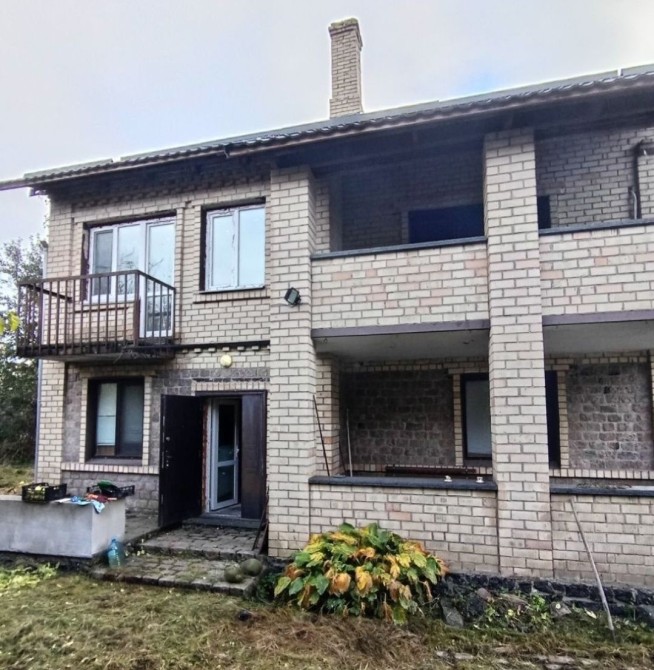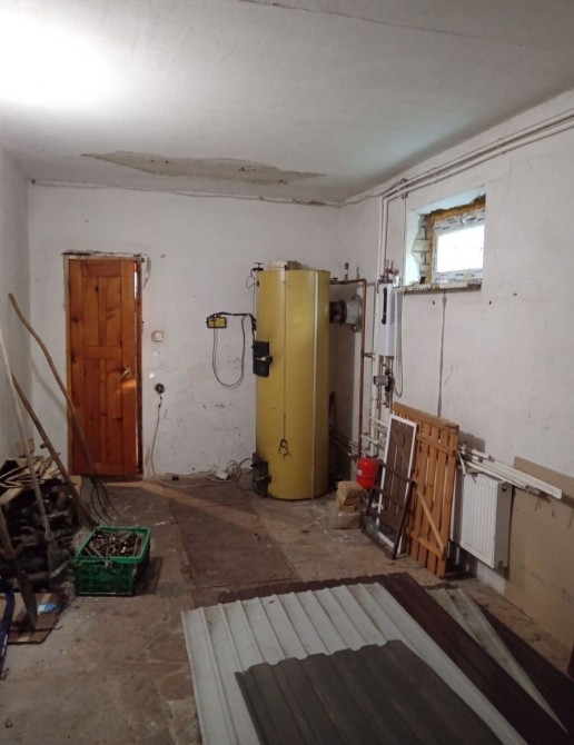 На першому поверсі. Кухня, кімната - вітальня з каміном, туалет, ванна кімната, гараж з ямою, погреб. На другому 4 кімнати, балкон. На мансарді утеплений дах. Є твердопаливний котел для опалення, також невеликий електрокотел, для підтримання системи.
