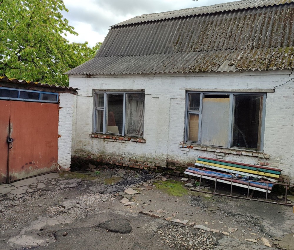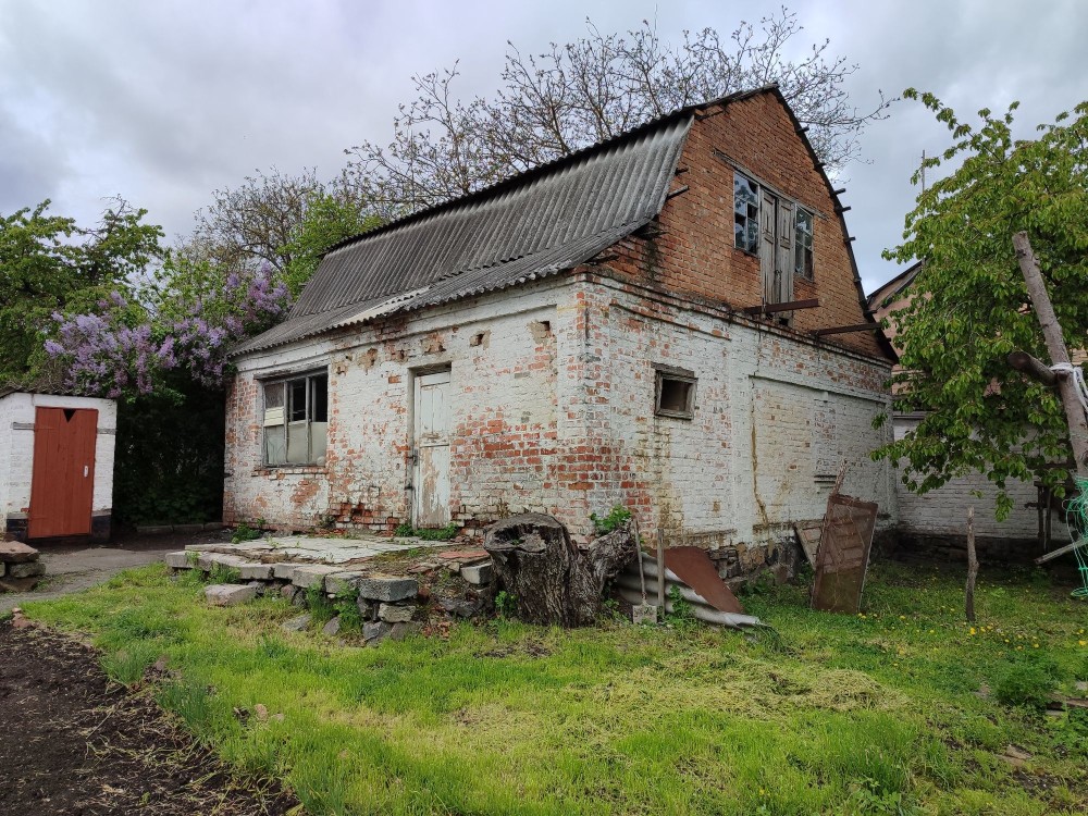 Будинок цегляний 72м2. Покрівля шифер. Фундамент бутовий із залізобетоним поясом. В будинку є світло і газ. На тереторі є ще будинок(з підвалом) гараж,туалет.