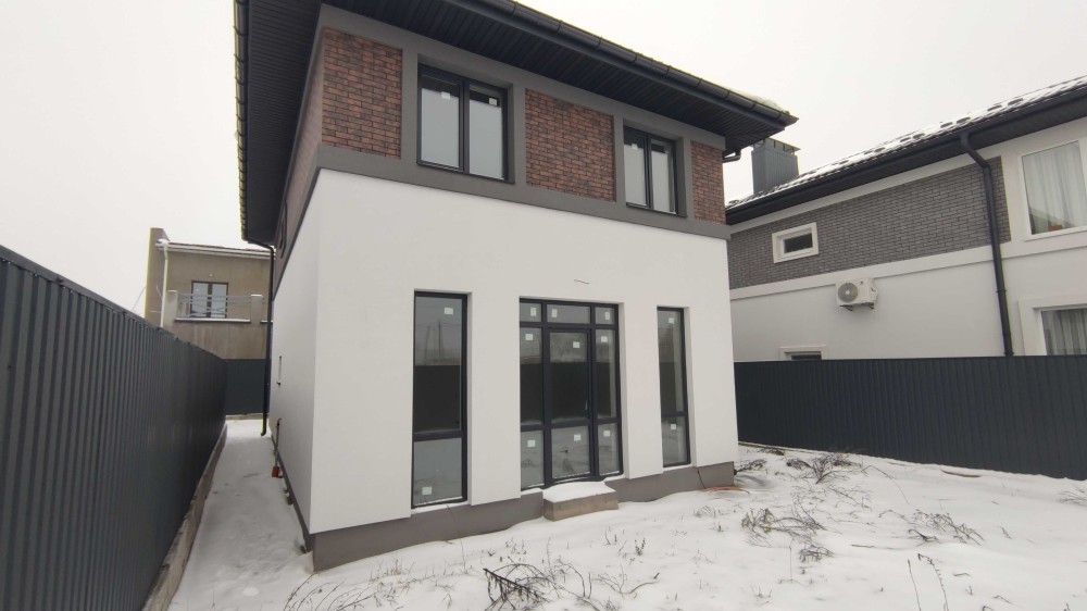 Продам новий будинок 2022 року на Нижньому ДНСі. Два поверхи плюс підвал і холодне горище. Газоблок Д-400 вкритий металочерепицею, обштукатурений і пофарбований, перекритий монолітним залізобетоном. Площа будинку 104 метри. Перший поверх: велика кухня 30 кв.м. з панорамним склінням і виходом на задній двір, передпокій, коридор, перший санвузол. Другий поверх: три житлові кімнати, другий санвузол, сходовий марш. У підвалі котельна, на горище розкладна драбина. Заведена вода зі свердловини 85 метрів, водовідведення в центральну каналізацію. Електроенергія 20 КВт. Змонтована система водяних теплих підлог і радіаторів, електричний котел на 10 КВт. По усьому будинку виконана розводка електрики. Стіни перетерті, металопластикові вікна з теплими скосами, в обох санвузлах розведена і змонтована сантехніка, укладений кахель, душова кабіна на першому і ванна на другому поверсі. На першому поверсі поли викладено плиткою, на другий закуплено і залишиться ламінат, також закуплені і залишаться вуличні світильники та деякі інші матеріали. Залізобетонні сходи на другий поверх викладені керамогранітом. Ділянка 2.5 сотки, обгороджена, відкатні автоматичні ворота. Двір вимощений тротуарною плиткою, змонтовано відведення стічних вод в дренажний колодязь. Залитий фундамент і колони під бесідку і барбекю. З вікон і бесідки відкривається чудовий панорамний краєвид на зелену зону річки Рось. Ціна: 160.000 у.о. Торг. Запрошуємо до співпраці продавців і орендодавців нерухомості. Агенція нерухомості пропонує повний перелік операцій з нерухомістю та супровідною документацією. Купівля-продаж, оренда, обмін житлових та комерційних об’єктів, земельних ділянок. Оцінка майна ринкова та для оподаткування. Технічні паспорти. Узаконення самочинного будівництва, добудови, перепланування. Початок будівництва та ввід в експлуатацію. Землевпорядні роботи: кадастровий номер, приватизація, розподіл, об’єднання, зміна призначення. Кредитування під заставу нерухомості. Безкоштовно приймаємо заявки від продавців та орендодавців. Гарантія конфіденційності. Юридичний супровід. м.Біла Церква Тел.(097)-879-80-99