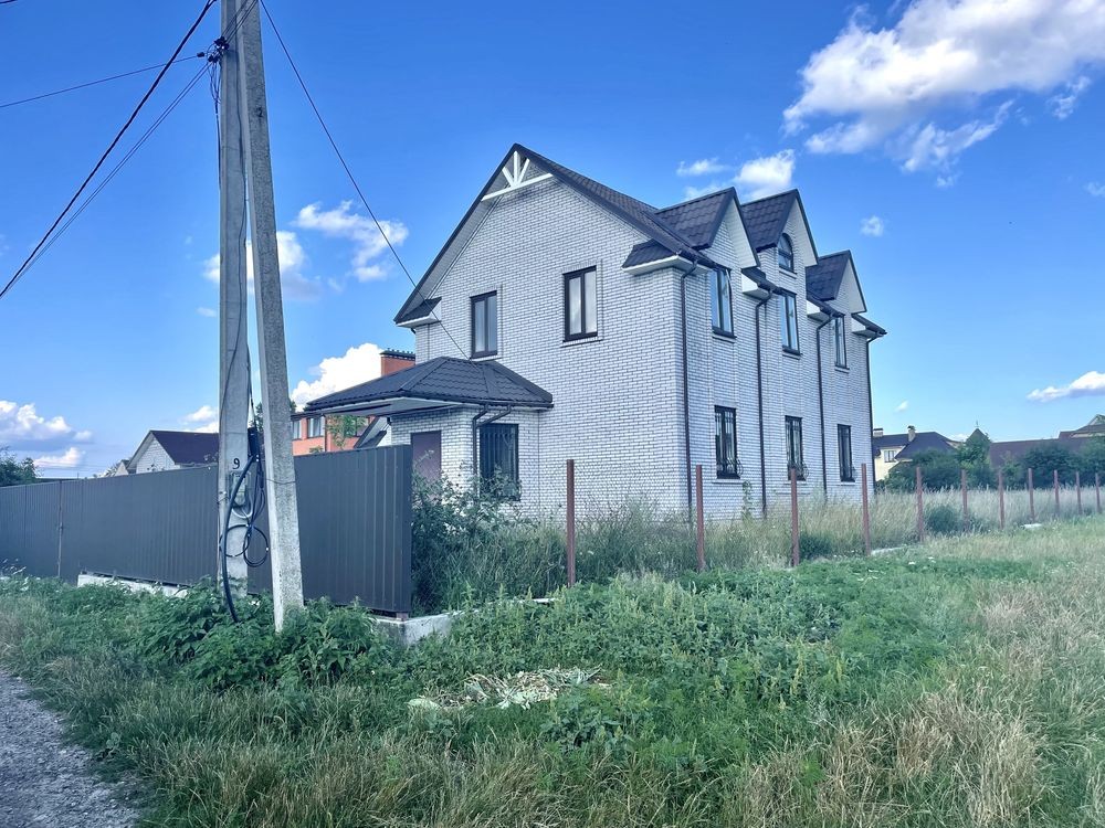 Продам новий будинок 2022 року на Нижньому ДНСі. Два поверхи плюс підвал і холодне горище. Газоблок Д-400 вкритий металочерепицею, обштукатурений і пофарбований, перекритий монолітним залізобетоном. Площа будинку 104 метри. Перший поверх: велика кухня 30 кв.м. з панорамним склінням і виходом на задній двір, передпокій, коридор, перший санвузол. Другий поверх: три житлові кімнати, другий санвузол, сходовий марш. У підвалі котельна, на горище розкладна драбина. Заведена вода зі свердловини 85 метрів, водовідведення в центральну каналізацію. Електроенергія 20 КВт. Змонтована система водяних теплих підлог і радіаторів, електричний котел на 10 КВт. По усьому будинку виконана розводка електрики. Стіни перетерті, металопластикові вікна з теплими скосами, в обох санвузлах розведена і змонтована сантехніка, укладений кахель, душова кабіна на першому і ванна на другому поверсі. На першому поверсі поли викладено плиткою, на другий закуплено і залишиться ламінат, також закуплені і залишаться вуличні світильники та деякі інші матеріали. Залізобетонні сходи на другий поверх викладені керамогранітом. Ділянка 2.5 сотки, обгороджена, відкатні автоматичні ворота. Двір вимощений тротуарною плиткою, змонтовано відведення стічних вод в дренажний колодязь. Залитий фундамент і колони під бесідку і барбекю. З вікон і бесідки відкривається чудовий панорамний краєвид на зелену зону річки Рось. Ціна: 160.000 у.о. Торг. Запрошуємо до співпраці продавців і орендодавців нерухомості. Агенція нерухомості пропонує повний перелік операцій з нерухомістю та супровідною документацією. Купівля-продаж, оренда, обмін житлових та комерційних об’єктів, земельних ділянок. Оцінка майна ринкова та для оподаткування. Технічні паспорти. Узаконення самочинного будівництва, добудови, перепланування. Початок будівництва та ввід в експлуатацію. Землевпорядні роботи: кадастровий номер, приватизація, розподіл, об’єднання, зміна призначення. Кредитування під заставу нерухомості. Безкоштовно приймаємо заявки від продавців та орендодавців. Гарантія конфіденційності. Юридичний супровід. м.Біла Церква Тел.(097)-879-80-99