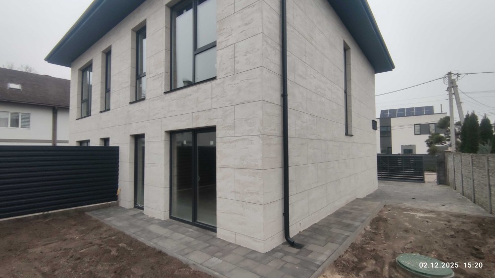 Продам новий будинок 2022 року на Нижньому ДНСі. Два поверхи плюс підвал і холодне горище. Газоблок Д-400 вкритий металочерепицею, обштукатурений і пофарбований, перекритий монолітним залізобетоном. Площа будинку 104 метри. Перший поверх: велика кухня 30 кв.м. з панорамним склінням і виходом на задній двір, передпокій, коридор, перший санвузол. Другий поверх: три житлові кімнати, другий санвузол, сходовий марш. У підвалі котельна, на горище розкладна драбина. Заведена вода зі свердловини 85 метрів, водовідведення в центральну каналізацію. Електроенергія 20 КВт. Змонтована система водяних теплих підлог і радіаторів, електричний котел на 10 КВт. По усьому будинку виконана розводка електрики. Стіни перетерті, металопластикові вікна з теплими скосами, в обох санвузлах розведена і змонтована сантехніка, укладений кахель, душова кабіна на першому і ванна на другому поверсі. На першому поверсі поли викладено плиткою, на другий закуплено і залишиться ламінат, також закуплені і залишаться вуличні світильники та деякі інші матеріали. Залізобетонні сходи на другий поверх викладені керамогранітом. Ділянка 2.5 сотки, обгороджена, відкатні автоматичні ворота. Двір вимощений тротуарною плиткою, змонтовано відведення стічних вод в дренажний колодязь. Залитий фундамент і колони під бесідку і барбекю. З вікон і бесідки відкривається чудовий панорамний краєвид на зелену зону річки Рось. Ціна: 160.000 у.о. Торг. Запрошуємо до співпраці продавців і орендодавців нерухомості. Агенція нерухомості пропонує повний перелік операцій з нерухомістю та супровідною документацією. Купівля-продаж, оренда, обмін житлових та комерційних об’єктів, земельних ділянок. Оцінка майна ринкова та для оподаткування. Технічні паспорти. Узаконення самочинного будівництва, добудови, перепланування. Початок будівництва та ввід в експлуатацію. Землевпорядні роботи: кадастровий номер, приватизація, розподіл, об’єднання, зміна призначення. Кредитування під заставу нерухомості. Безкоштовно приймаємо заявки від продавців та орендодавців. Гарантія конфіденційності. Юридичний супровід. м.Біла Церква Тел.(097)-879-80-99