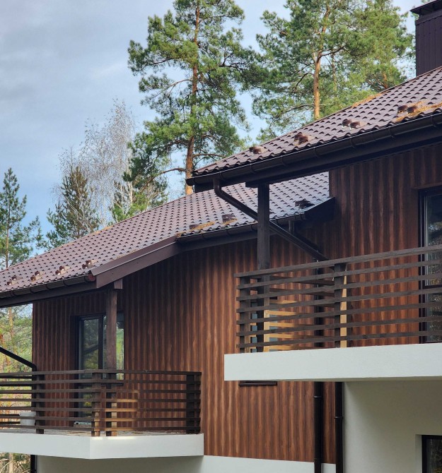 Дуплекс збудован із високоякісних матеріалів :газоблок (400*300*200),фасад із комбінованого утеплювача ( мінеральна вата+пінополістерол); міжповерхове перекриття-моноліт; покриття даху – високоякісна металочерепиця(Корея); вікна- металопрофіль(wds)фурнітура-Німеччина.