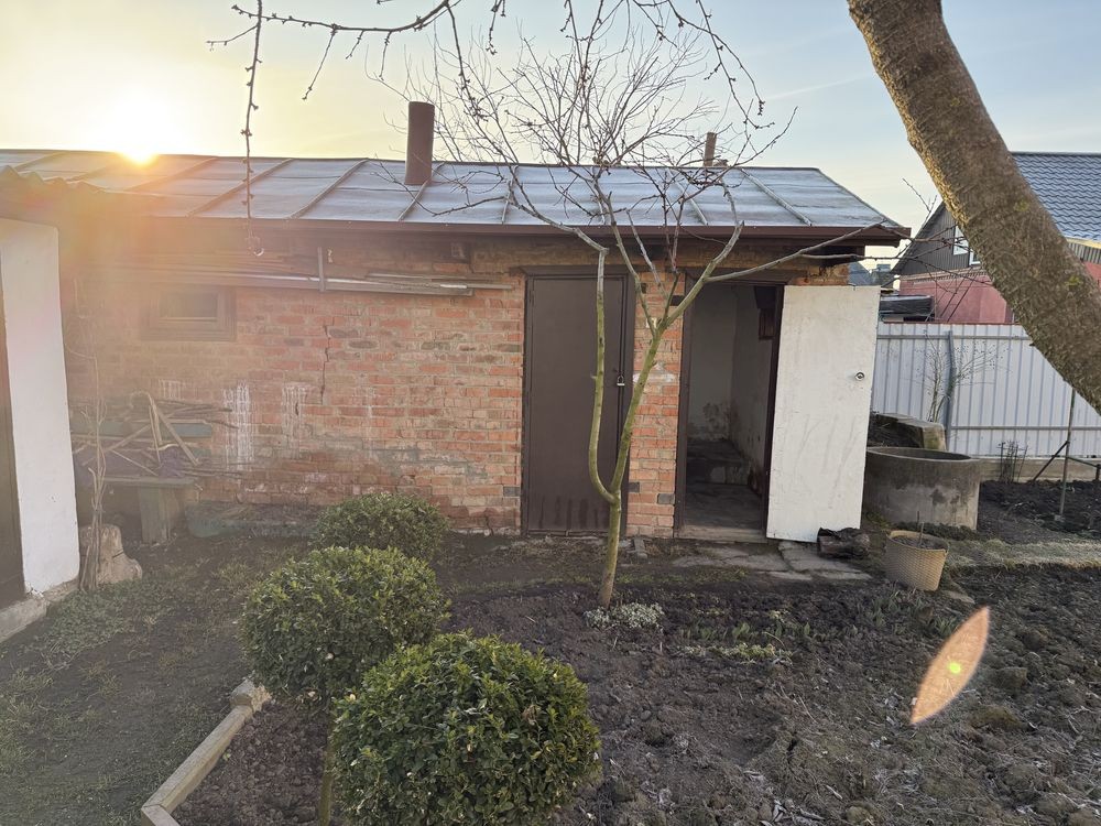 Продам частину будинку з гаражем ( з ямою ) господарчі будівлі ( баня , сарай ) поруч магазини , школа , садочок, церква . Будинок не над дорогою . Утеплений , зручності в будинку, газовий котел , бойлер, техніка . Заходь і живи .