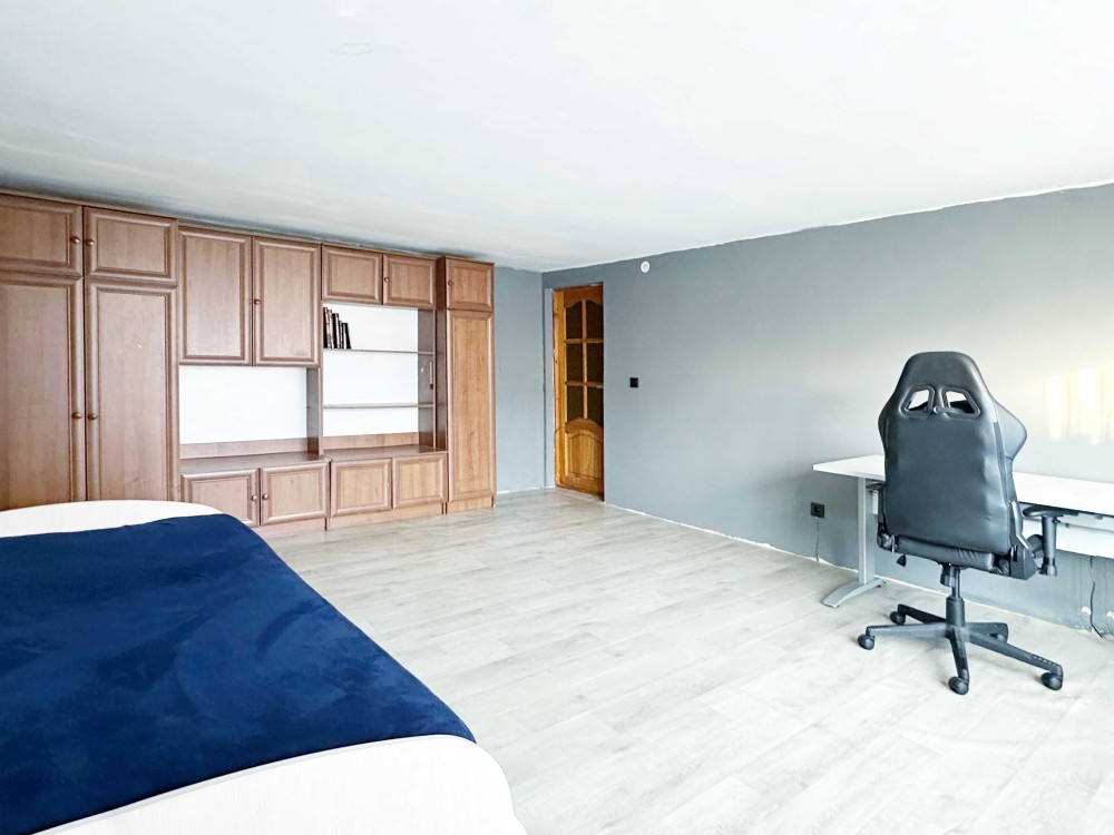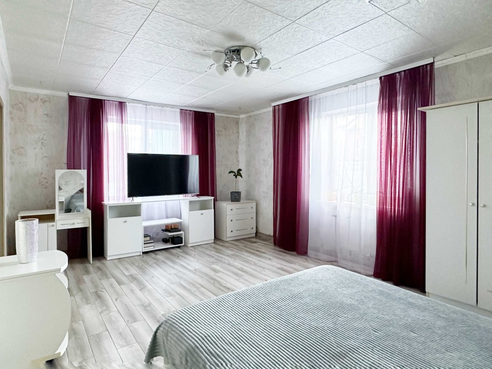 - 2 кімнати на другому напів-мансардному поверсі (скошені стелі, але вікна вертикальні, повноцінні)