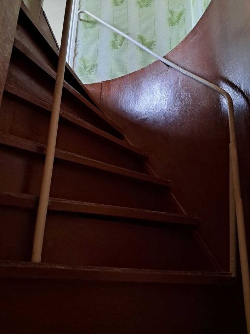 Компактні сходи всередині будинку на другий поверх і є сходи на другий поверх прямо з двору.