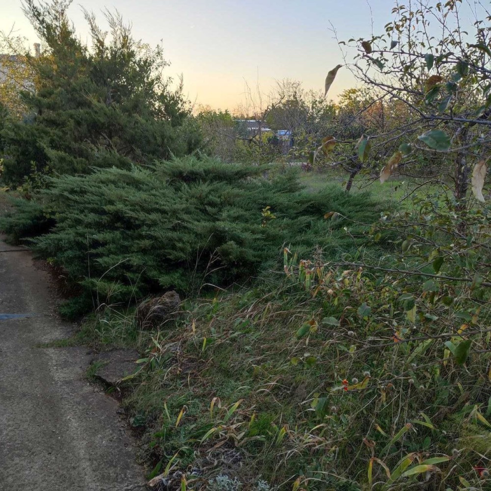 Участок 8 соток, угловой, ровный, есть плодовые деревья, альпийская горка, виноградники, место под авто.
