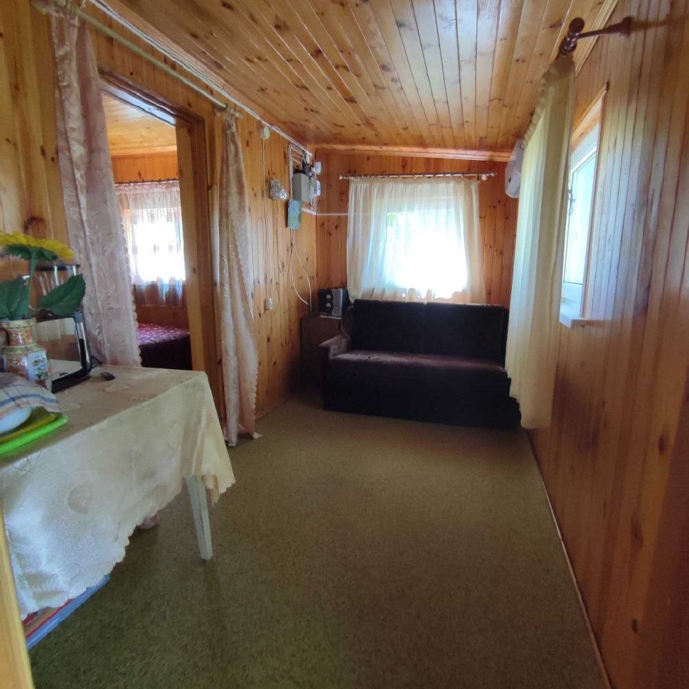Дача одноэтажная, построена из белого силикатного кирпича, внутри отделана деревянной вагонкой.