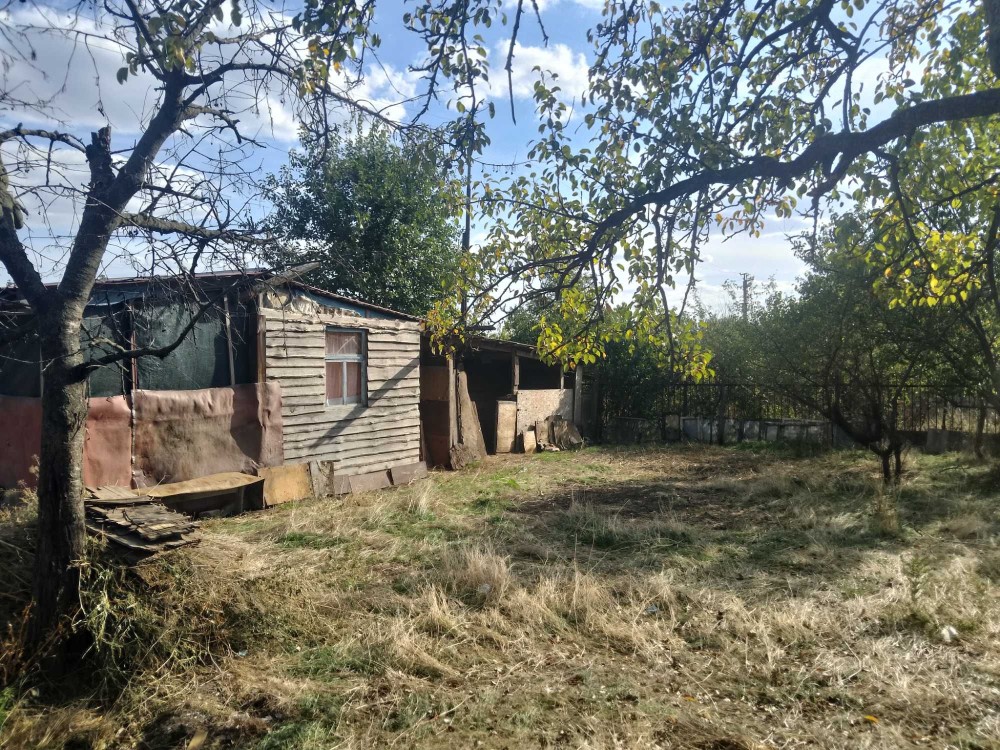 Находится в центрально-городском районе на карачунах. Два участка рядом 15 соток. Домик деревяный ,утепление минвата обита фольгой,залиты площадки под камин, ,плюс сарайка. Есть бетоный блок на два отделения, Двери железные. Электричество поключено счетчик на территории, вода по сезону апрель -октябрь. Огражденно забором рябицей, столбики бетонные.