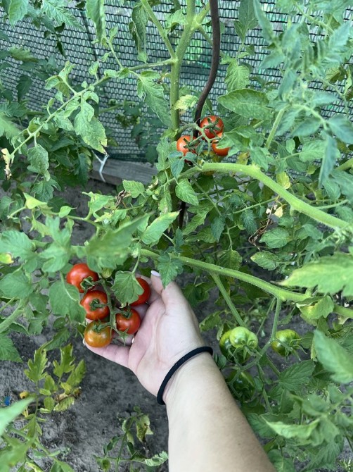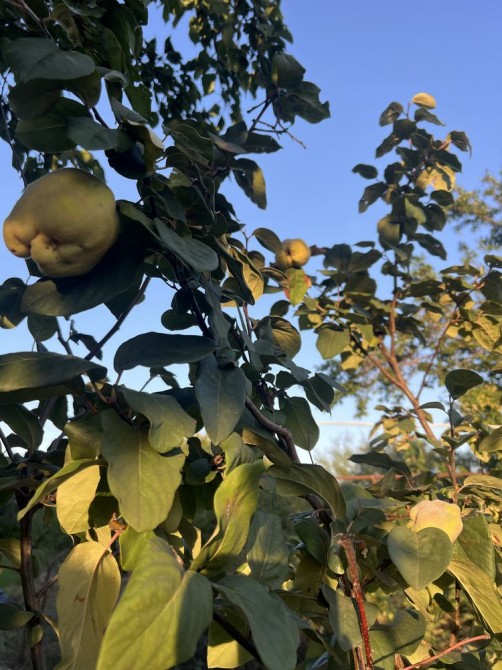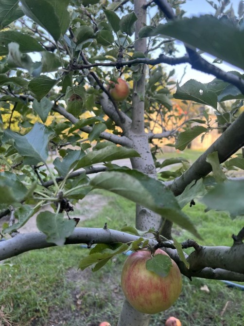 -Так же есть фруктовый деревья:4 яблони,2 абрикосы,персик,айва,персик-слива,калина и две любимые туи.