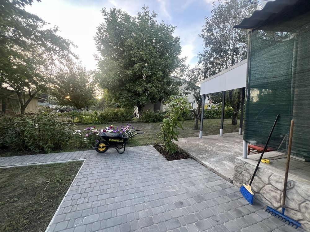 -брусчатка на дорожках выложена в этом году,так же выложен участок для бассейна или дополнительной беседки