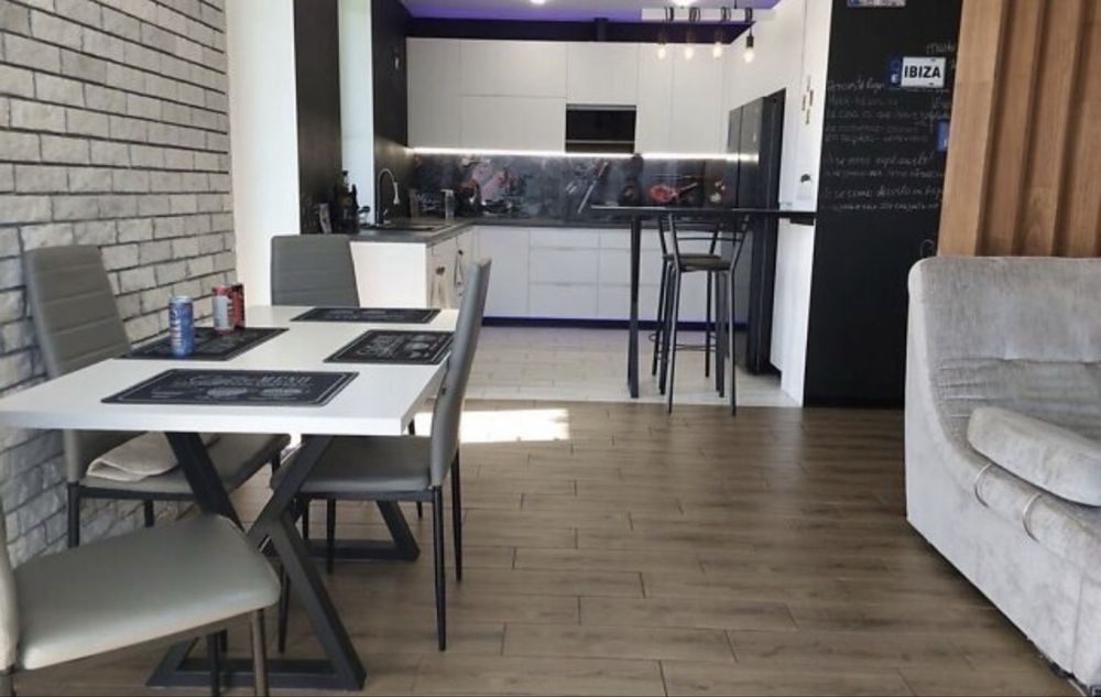 Формат: 2 поверхи, 3 спальні, кабінет, кухня - студія 40м2, теплі підлоги, електричний котел і опалення.
