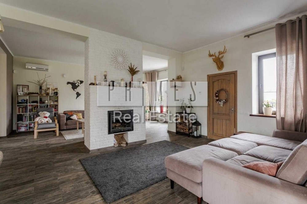Продається будинок із вражаючим садом та просторою ділянкою 30 соток. Загальна площа будинку 480 м², він має два наземних і два підземних поверхи. Будинок облаштований якісним ремонтом, меблями та технікою. У вітальні встановлений камін для затишку та додаткового тепла. Є тепла підлога, кондиціонери, фанкойл, система охорони Ajax, відеонагляд по периметру.