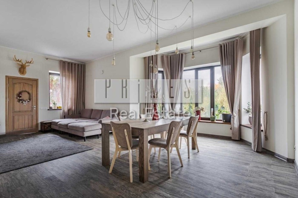 Будинок складається з 5 житлових кімнат, окремої кухні, вітальні, 4 санвузлів, кількох гардеробних, пральні та технічних приміщень. У гаражі є місце для двох авто, а також облаштована відкрита парковка.