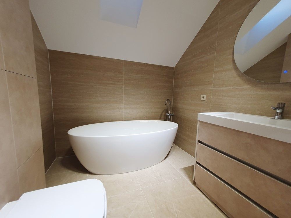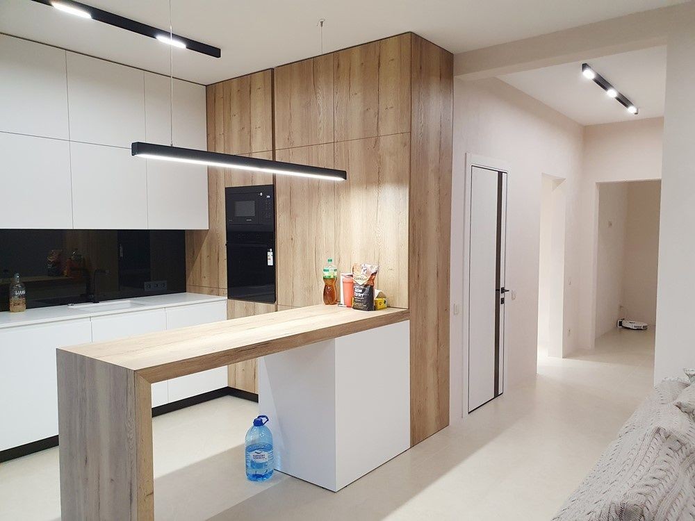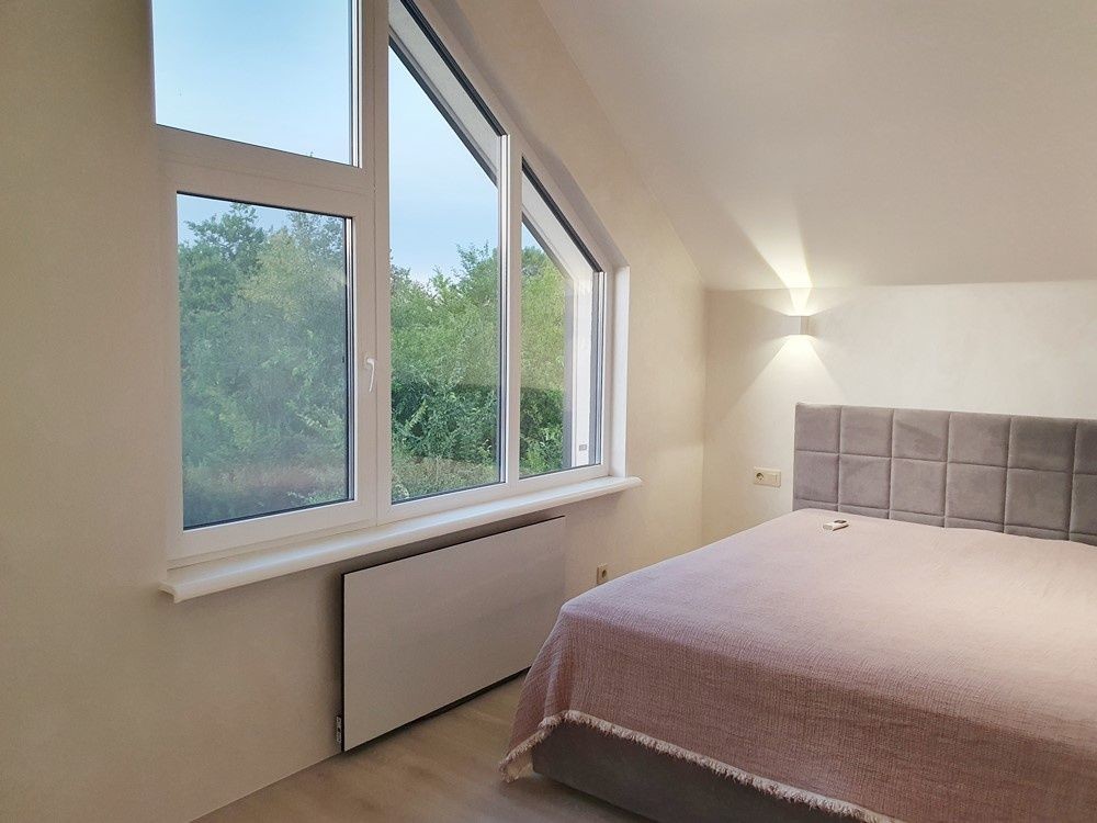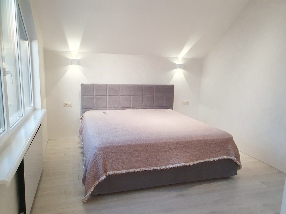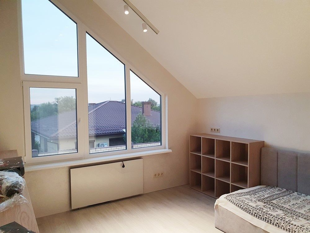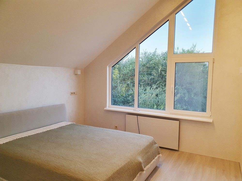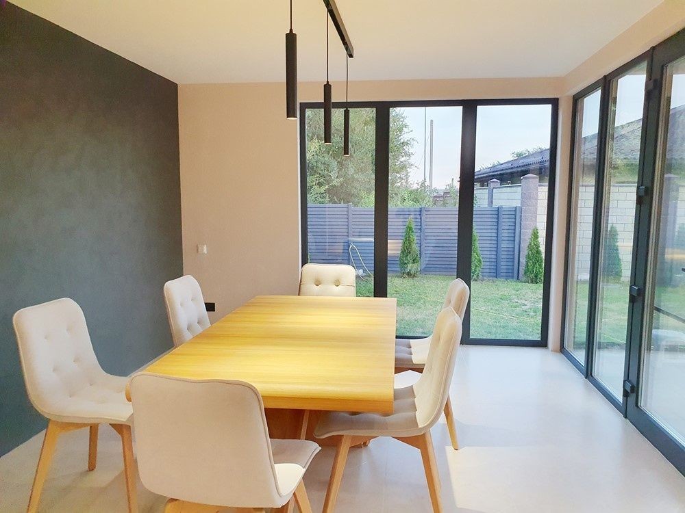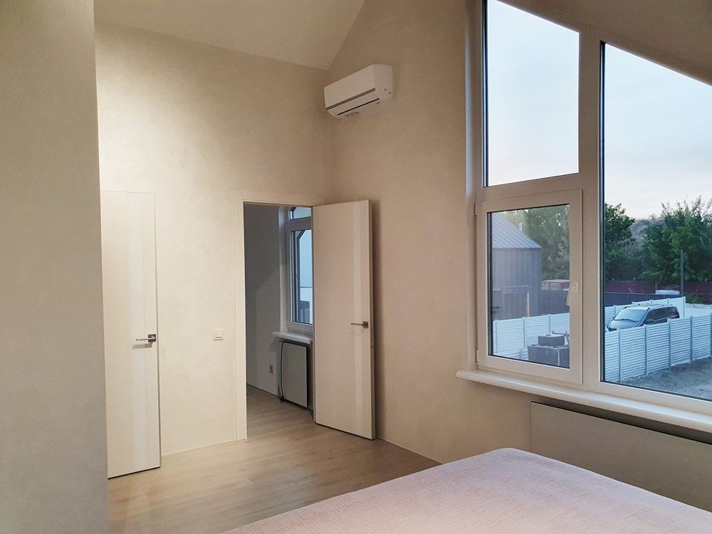 136м.кв. 2-х этажный. Крыша фальцевая кровля, метало пластиковые окна, энергосберегающие стены. Внутри только закончили свежий новый ремонт в минимализме. Заведено 16 кВт электричества, своя скважина 70м. с отличным напором и чистейшей питьевой водой. Планировка: 1-й этаж: прихожая с большим зеркалом, гостиная – студия с выходом на террасу и кухонной зоной с островом, встроенной мебелью и всей необходимой бытовой техникой, топочная с электрическим котлом для отопления водяного теплого пола на первом этаже, коридор, бытовка, санузел, кабинет.
