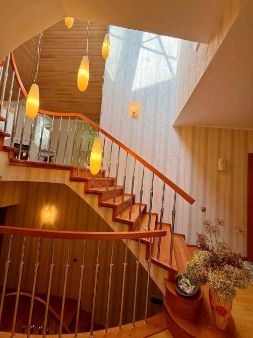Бронированные окна на первом этаже, немецкий котёл Buderus, бойлер на 300 литров, трубы REHAU, внутреннее и внешнее видеонаблюдение, сигнализация, интернет, фильтрация воды, генератор с автоматическим переключением — жить здесь можно автономно и уверенно.