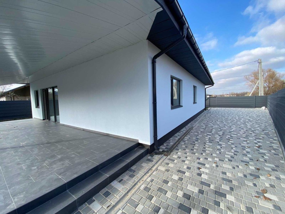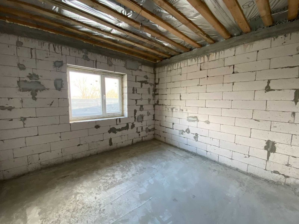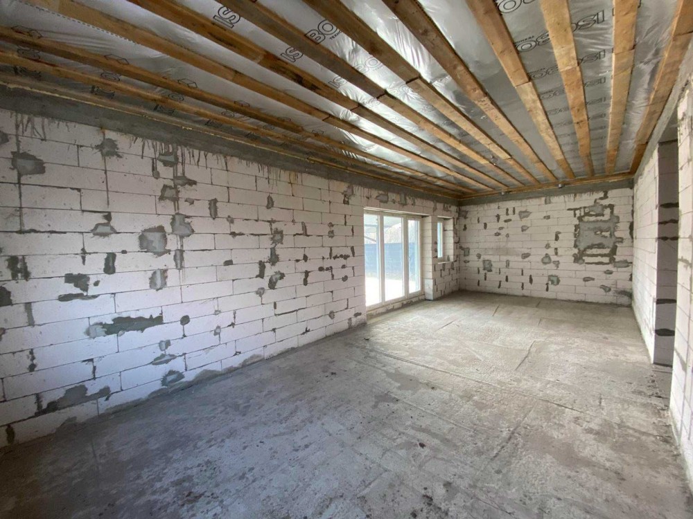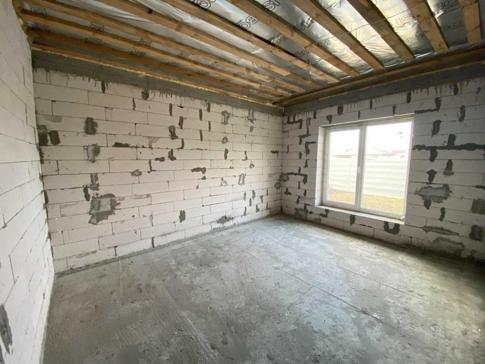 Дом построен из газобетона 400мм, утеплен 100мм минеральная вата. Большие витражные окна Aluplast премиум с максимльным энергосбережением и антивандальной фурнитурой, бронированные двери. Крыша мягкая кровля(битумная черепица), утепление 200мм ватой по перекрытию. Высота потолков 3м. Канализация септик, 12м3, централизованное водоснабжение, электричество, в дом заходит 15кВт, 3 фазы. Автоматические ворота, место для парковки 2 авто.