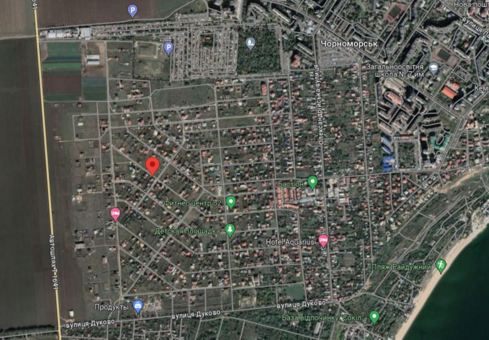 Близько до міста Чорноморськ. Хороша дорога асфальтирована.