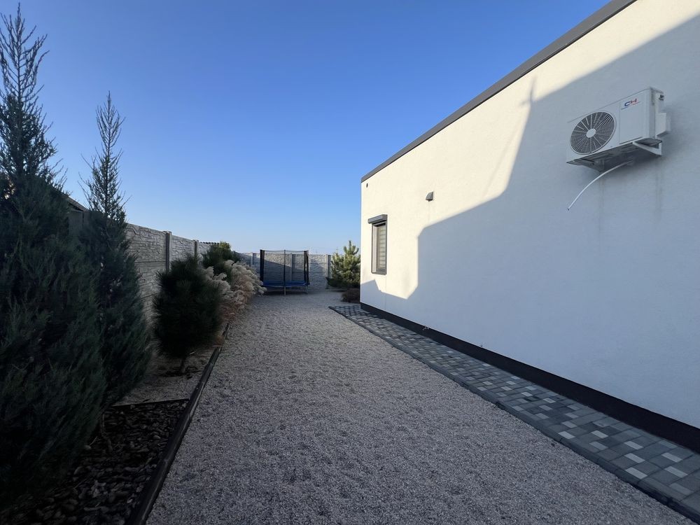 Продається затишний одноповерховий будинок. Без меблів. Є кондиціонер, електрокотел, відеоспостереження, сигналізація. Тариф електроопалення, 380 Вольт, 16 кВт. Вода - свердловина в будинку. 4 спальні. Ділянка 15 соток, ландшафтний дизайн.