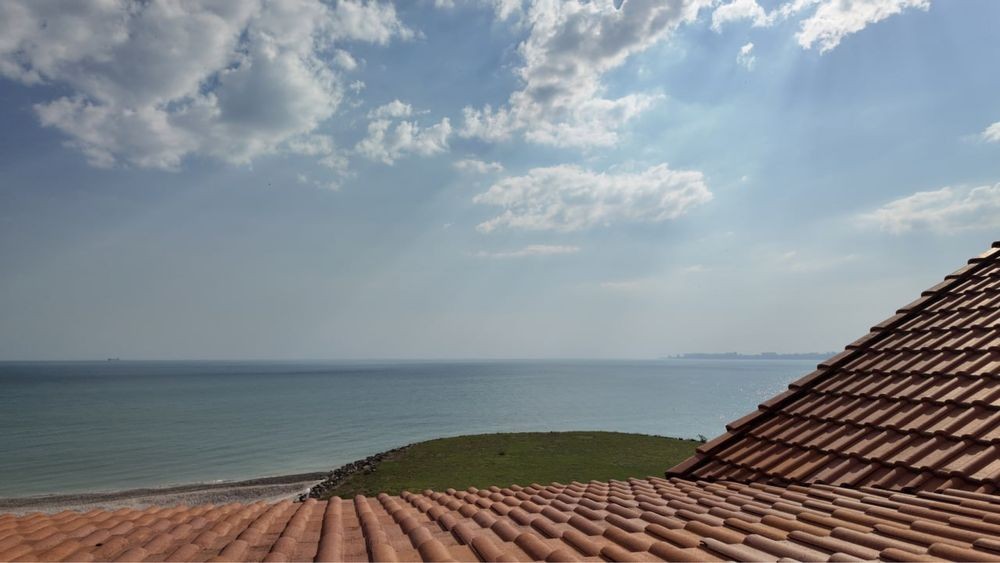 Прямой вид моря, который не закроется другими домами. Вид на буну и пляж. Очень редкий красивый прямой морской вид. ( таких участков единицы ).