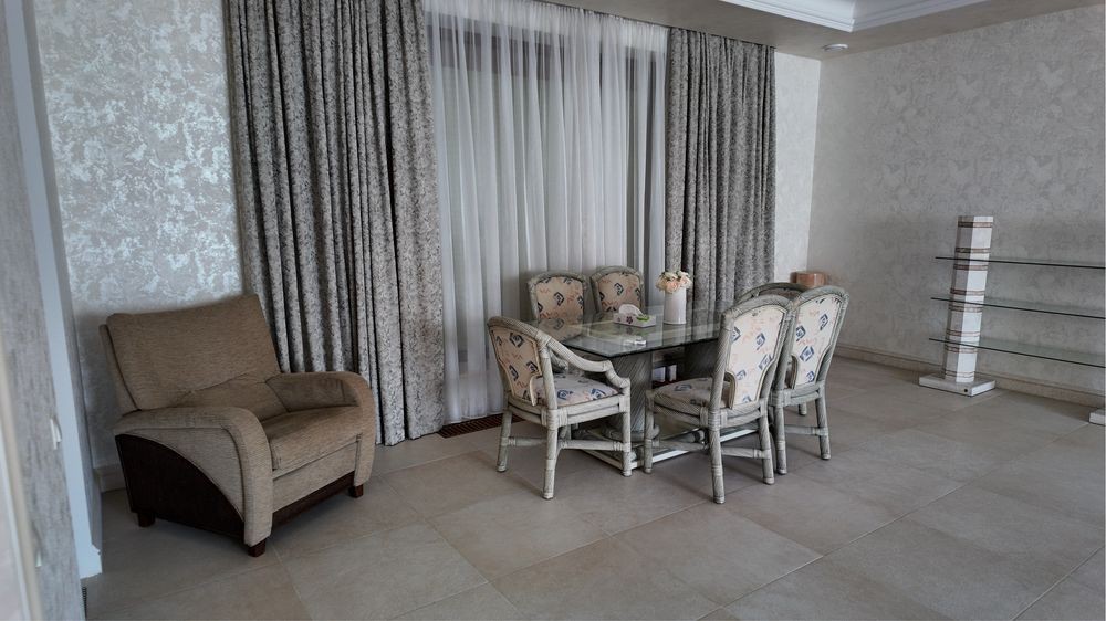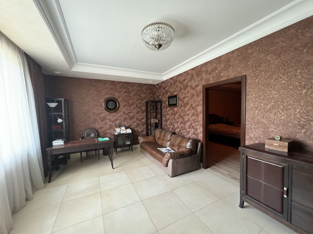 Итого ( 3-4 спальни , кабинет, две гостиные, терраса и кухня. ) третий уровень также можно эксплуатировать с пользой. Зал / бильярд/ Гостева. Есть постирочная и сауна.