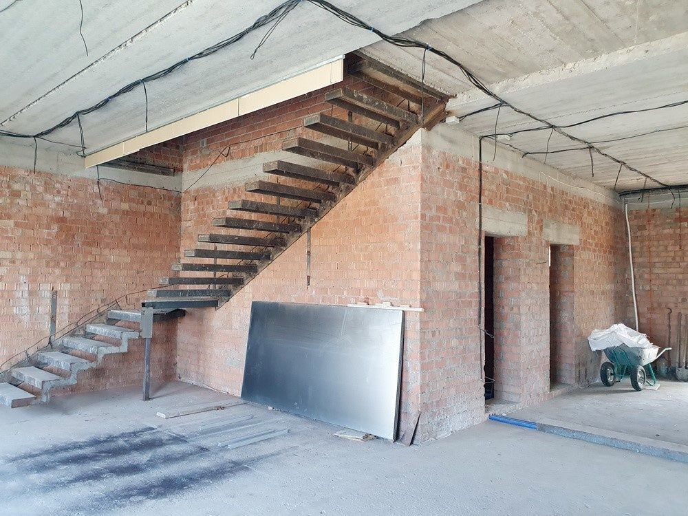 280м.кв. 2-х этажный, красный кирпич + утеплен 100мм. пенопласт, крыша метало черепица, гостиная с панорамным остеклением, кухня, 4-комнаты, 3-санузла, топочная, сауна, просторная терраса, высокие потолки, металлопластиковые окна с двойным стеклопакетом, внутри состояние под отделку. Выполнена вся разводка электричества и коммуникаций для санузлов, смонтировано оборудование для отопления, расставлены перегородки согласно планировке.