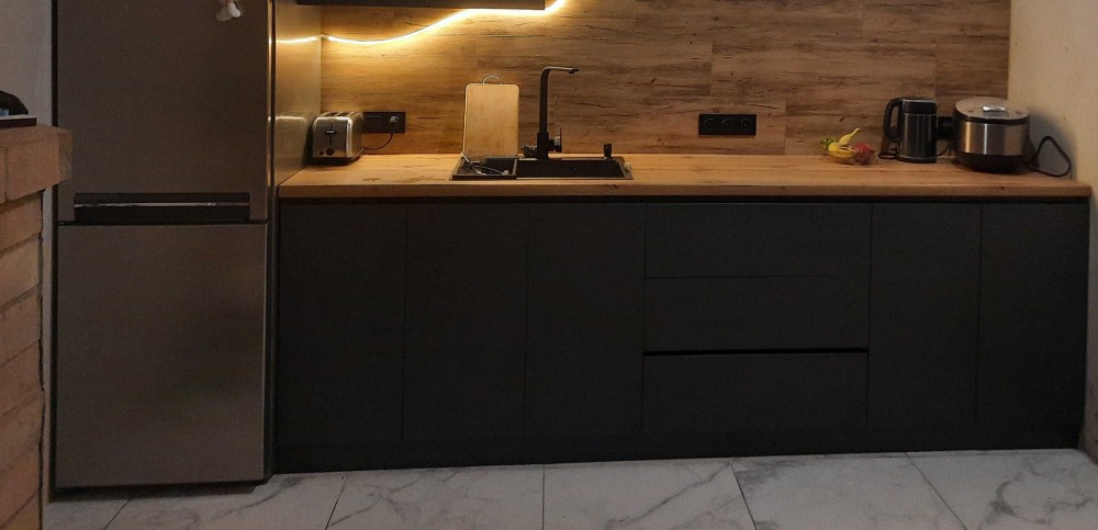 Панорамное окно на кухне с видом на поле ,на кухне сделан частичный ремонт (осталось шпаклевка,покраска)