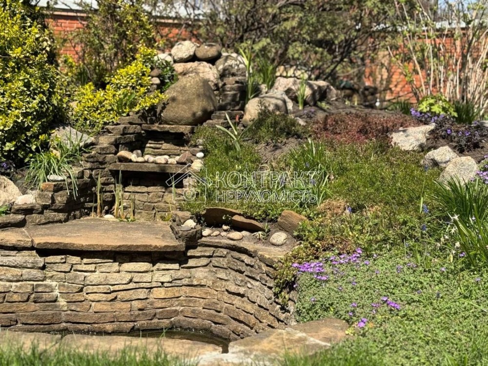 На ділянці із будівель: гараж, сарай, льох, свердловина, альтанка, зона барбекю, басейн. Безліч декоративних та плодових рослин, доглянута територія, ідеальна для відпочинку та усамітнення.