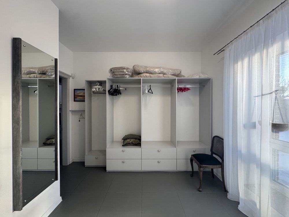 Площадь - 174,5 кв.м. Кухня-столовая-гостиная, зона камина, 2 спальни, 2 с/у, гардеробная (может быть 3 спальней), прихожая.