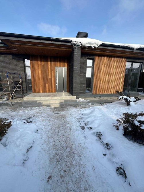 - на фасаде термо дерево и силиконовая декоративный кирпичик