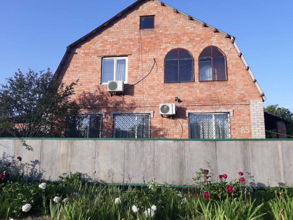 Дом на два этажа 145 кв.м. Стены кирпичные, покрытие кровли - шифер. Центральная канализация. Перекрытие - пустотные плиты. Большие гараж и подвал, чердак. Автономное газовое отопление, установлена колонка. Подключён и узаконен твердотопленный котел. Есть возможность отключения отопления второго этажа. Окна МПО, вся территория ограждена забором, на участках растут плодовые деревья, виноград. Цена 30 тыс. $. Торг уместен.