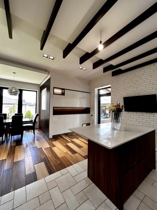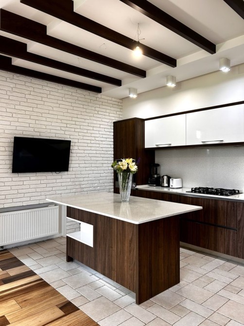 Кухня зручна для приготування і функціональна, створена з любовʼю до дружини. З кухні є вихід на задній двір до мангальної зони.