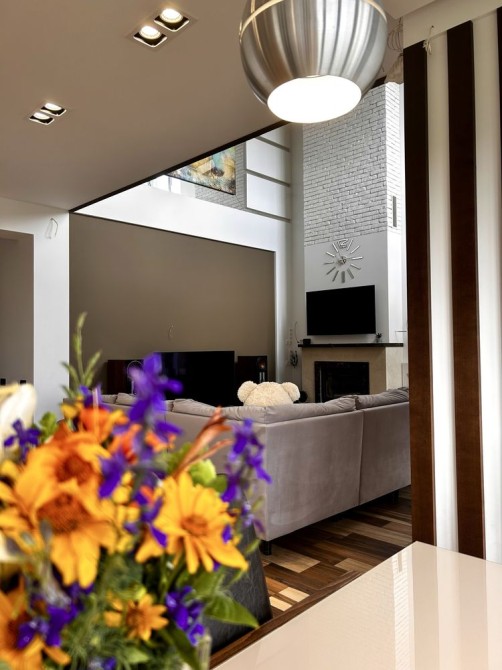 Будинок дуже світлий . Великі панорамні вікна радують око краєвидами. Тепла підлога по будинку- зігріє ваші ніжки , а полумʼя каміну- зігріває душу і створює затишок.