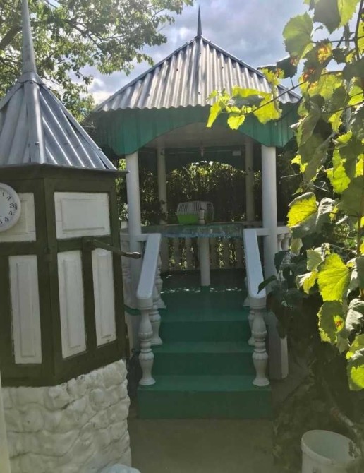 Во дворе летняя беседка.