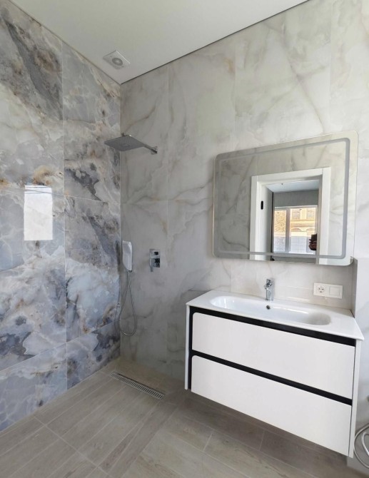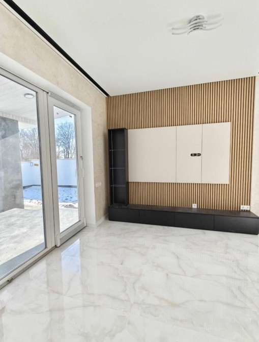На первом этаже просторная кухня-студия с выходом на терассу, прихожая, 2 просторные спальни, мастер спальня с гардеробом и санузлом, гостевой санузел и топочная, высота потолков = 2,9 м.